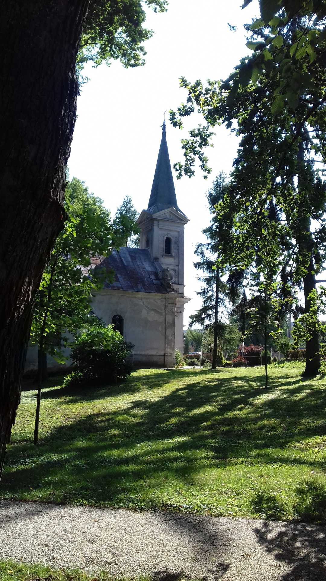 Základy kaplnky boli položené v roku 1797 v Ujházyho záhrade (dnes historický park). Kaplnka bola dokončená v roku 1798 v klasicistickom slohu a v tom istom roku, 26. augusta, bola posvätená. Kostol dala postaviť vdova Anna Rosina Ujházyová rod. Pulszká. Kostol bol postavený z kameňa a bol krytý šindľom. V roku 1866 dostal novú strechu. Pod kostolom bola vybudovaná krypta pre členov rodiny Ujházyovej. V roku 1878, kedy sa realizovala oprava celého kostola, sa začala budovať ku kostolu veža, ktorá bola dokončená v nasledujúcom roku. Vo veži boli umiestnené dva zvony - umieráčik a medený klasicistický zvon (v r. 1803 ho odlial košický zvonolejár Kristián Lebrecht). Špecifikom pri tomto zvone je reliéfne vyobrazenie erbu rodu Ujházy. Pri posviacke kostola (po oprave) bola na priečelí veže nad hlavným vchodom inštalovaná pamätná kamenná doska s maďarským nápisom: "V roku 1879 postavil Jozef Ujházy na pamiatku svojho drahého zosnulého syna Arpáda."